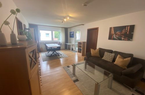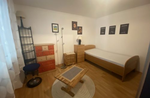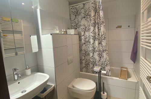 Hübsche 2-Zimmer-Wohnung im 1. Stock eines Mehrfamilienhauses im Norden der Kurstadt. Bis auf wenige Möbelstücke, die Sie im Wohnbereich vervollständigen können, ist die Wohnung bereits eingerichtet und mit Lampen, Gardinen und Dekomaterial ausgestattet. Im Schlafzimmer sind ein 4-teiliger Schrank, 2 Betten und kleine Beistellmöbel vorhanden. Auch die Gardarobe ist möbliert und im Badezimmer gibt es einen modernen Spiegelschrank.